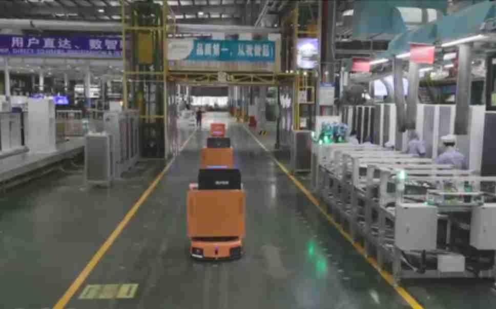 为车载冰箱物流配送打造的智能解决方案,,,包含产中物流通过潜伏举升AMR搬运至线边,,产后成品物流智能仓储,,,流程包含产中物流智能齐套入库,,,线边安灯叫料AMR智能配送至线边,,成品入库、、、、出库,,,,通过无人堆高车机器人,,智能仓储管理替代人工作业管理,,,实现更高存储、、更高效率、、更具柔性化的解决方案。。